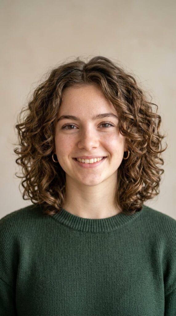 Layers give each curl room to spring up and form without being pulled down by weight. Looks bouncy on wavy hair, structured and defined on curly. Getting it cut dry is the most important step — wet cuts lead to layers that land in the wrong places. A good curl cream or diffuser finish makes all the difference.