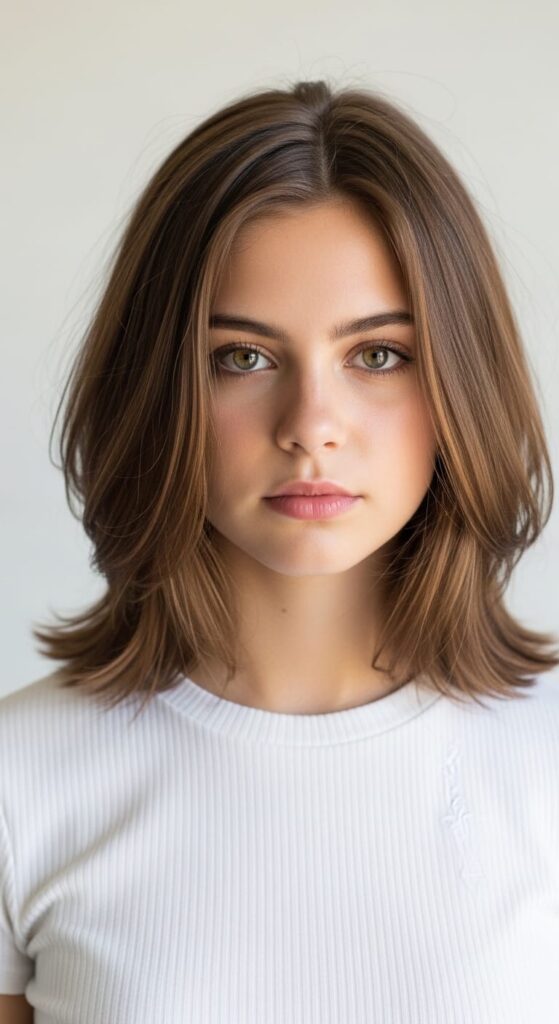 Subtle face-framing layers that create movement and make fine hair look fuller than it is. The layers catch light at different heights which adds the illusion of volume. Looks best with a round brush blowout — without heat it can go a little flat. Dry shampoo and mousse help a lot on easy days.